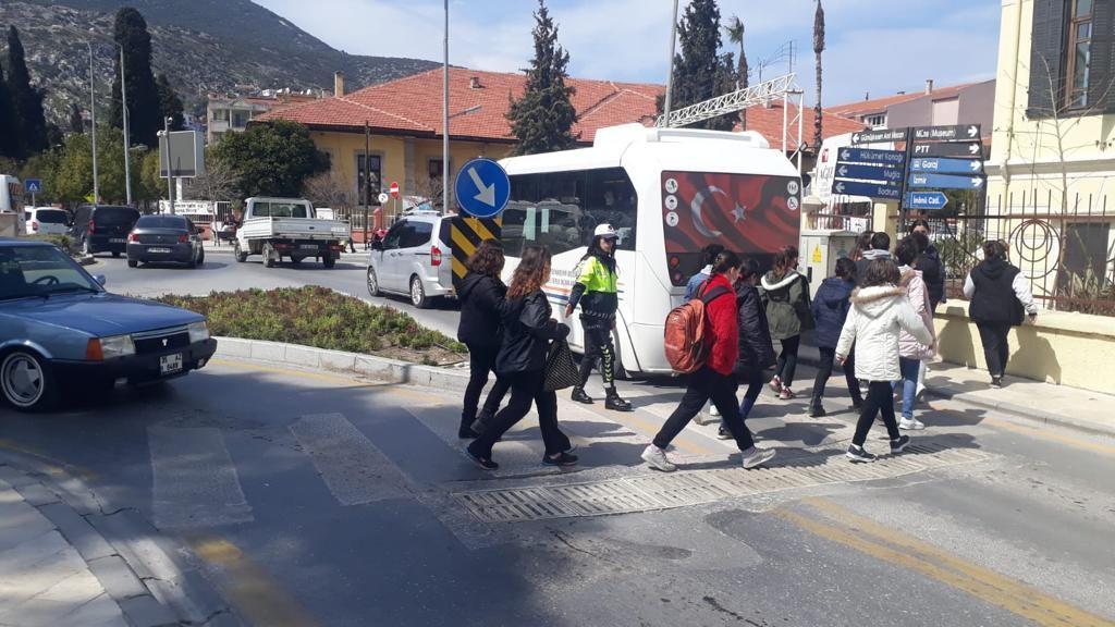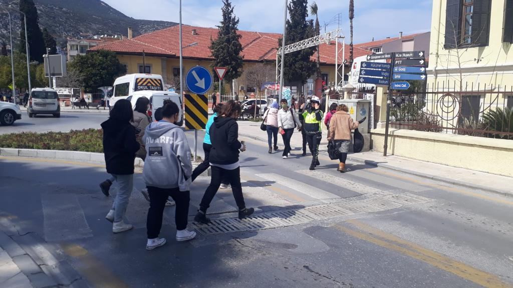 Milas İlçe Emniyet Müdürlüğü Trafik Denetleme Büro Amirliği ekiplerince yaya geçidi bulunan ışıksız kavşaklarda uygulama yapıldı.