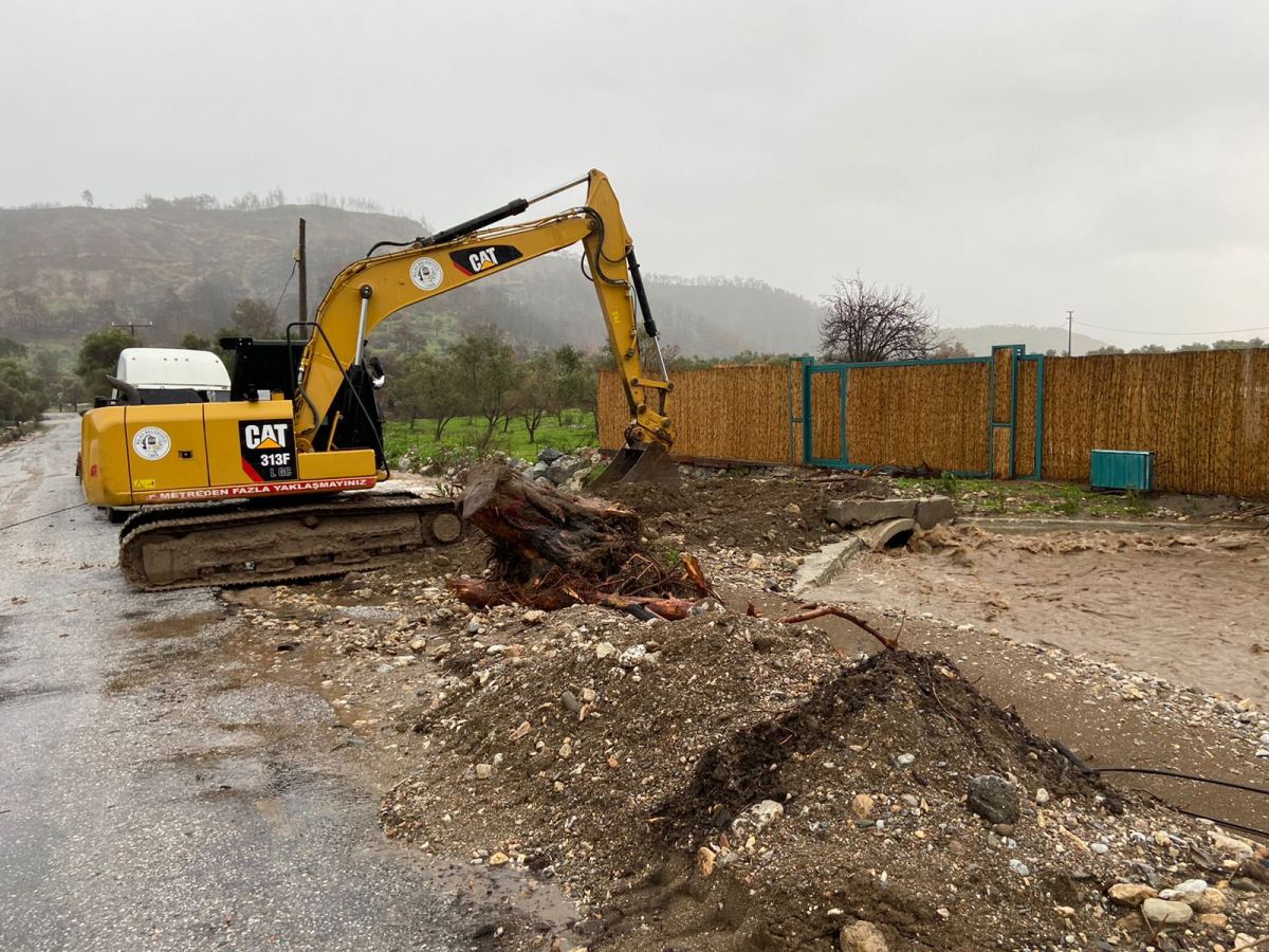 Milas’ta etkili olan sağanak yağıştan dolayı meydana gelen olumsuzluklara belediye ekipleri müdahale etmeye devam ediyor. Tüm gün etkili olan ve öğle saatlerine doğru etkisini arttıran sağanak yağıştan dolayı dere yatakları tıkandı. Milas’a bağlı Çökertme ve Gökbel Mahallerinde kanal ağzında bulunan büzler alınarak dere yatağı açıldı. Çalışmaların sürdüğü dere yataklarında suyun doğru yöne akması sağlanırken, temizlenen dere yataklarından birçok lastik ve atık malzemesi çıkartıldı.