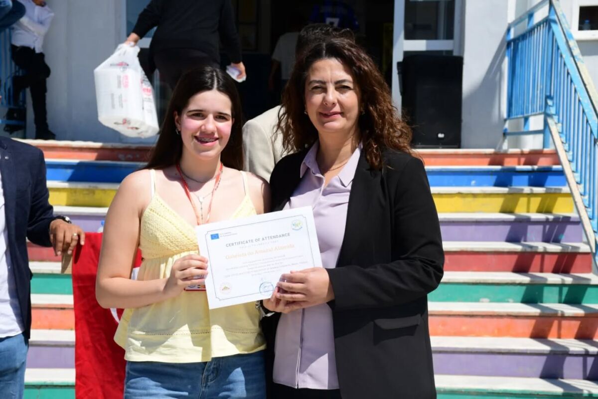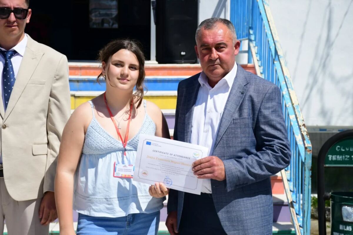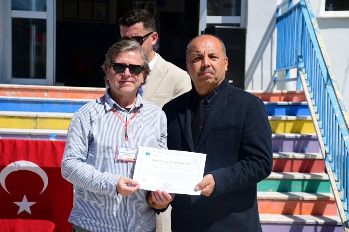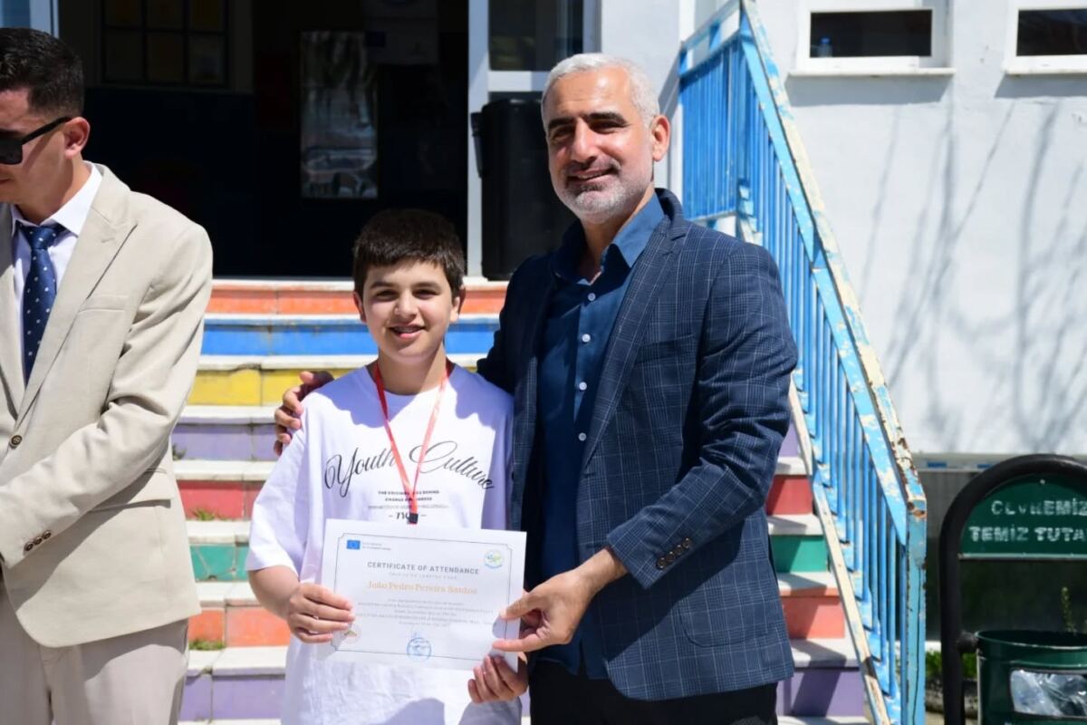 Program sonunda Erasmus öğrencilerine İlçe Milli Eğitim Müdürü İsa Bal, Gençlik ve Spor İlçe Müdürü Durmuş Tayfun Uslu, Gençlik Merkezi Müdürü Aşkın Binbir ve Şube Müdürü Ümran İnce katılım belgesi verdi.