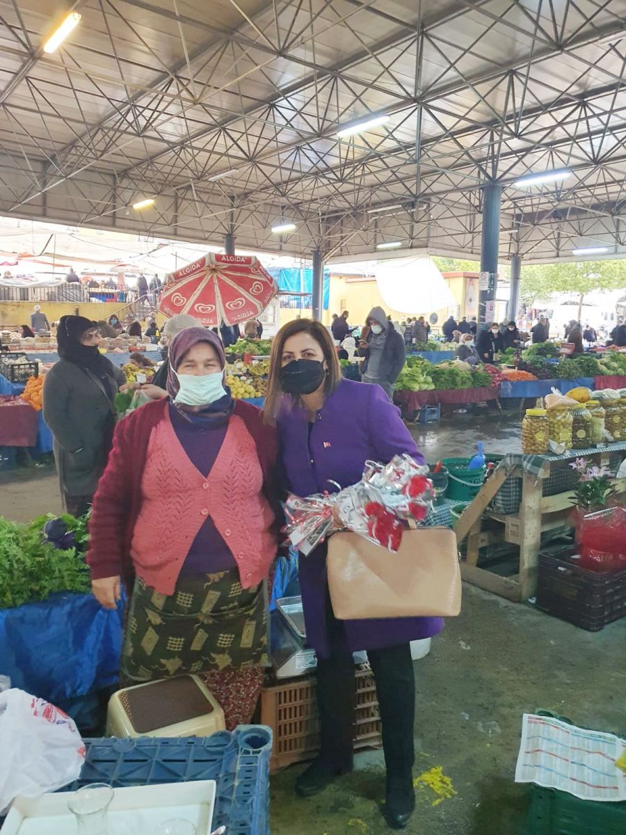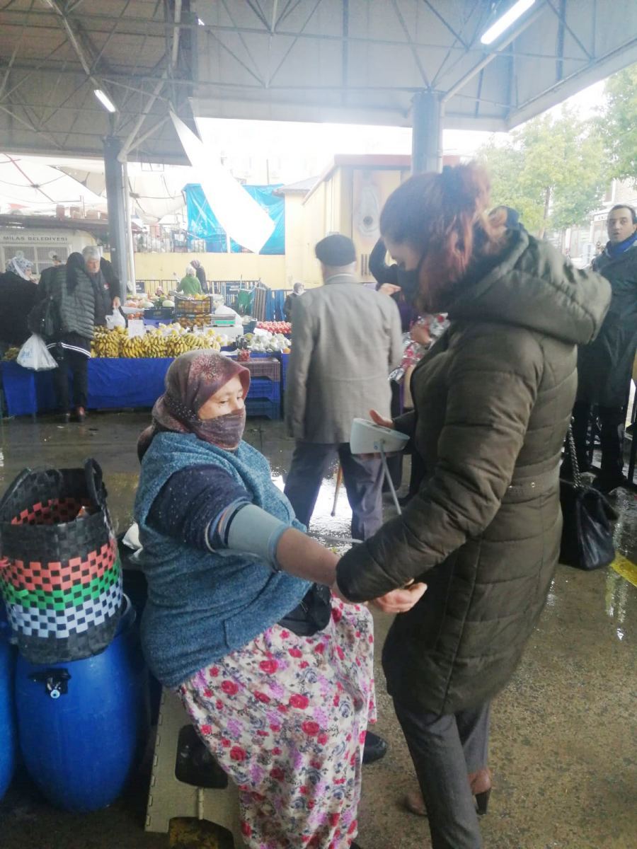 Sağlık-Sen Kadın Komisyonu’nun düzenlediği organizasyonla 8 Mart Dünya Kadınlar Gününde Milas halk pazarında sağlık emekçileri, üretici kadınlarla buluştu.