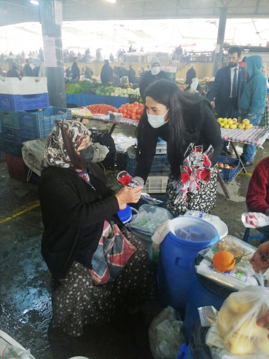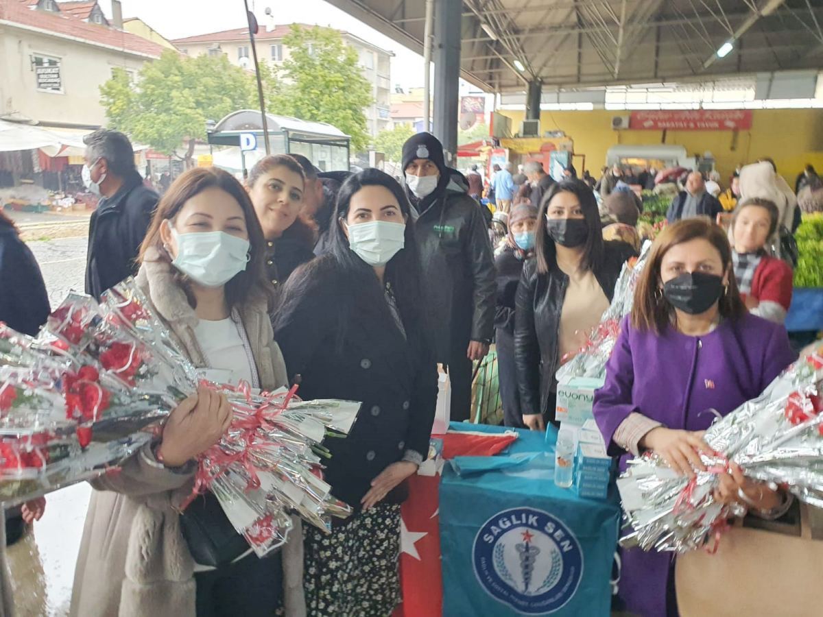 Sağlık-Sen Kadın Komisyonu üyeleri üretici kadınlara karanfil dağıtarak 8 Mart Dünya Emekçi Kadınlar Günü’nü kutladı.
