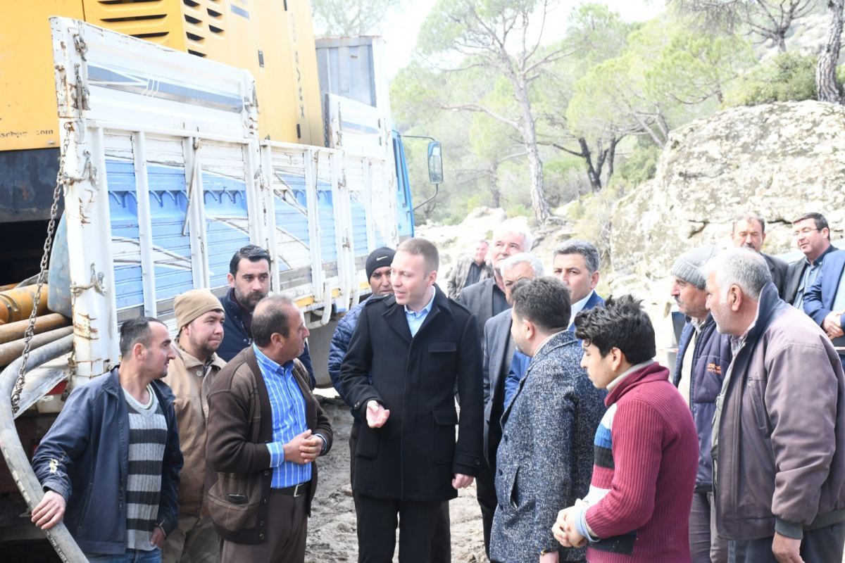 250 metre derinliğe kadar inecek olan ve 3 gün sürmesi beklenen sondaj çalışmalarını Milas Kaymakamı Mustafa Ünver Böke ve AK Parti Milas İlçe Başkanı Emin Çelik yerinde inceledi.