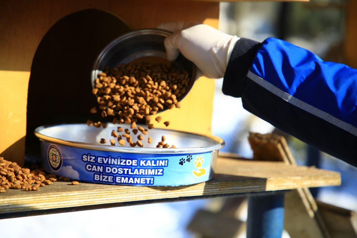 Zorlu kış şartları ile beslenme imkânları azalan sokak hayvanları için park, bahçe ve boş arazilere yüzlerce kilogram mama bırakıldı.