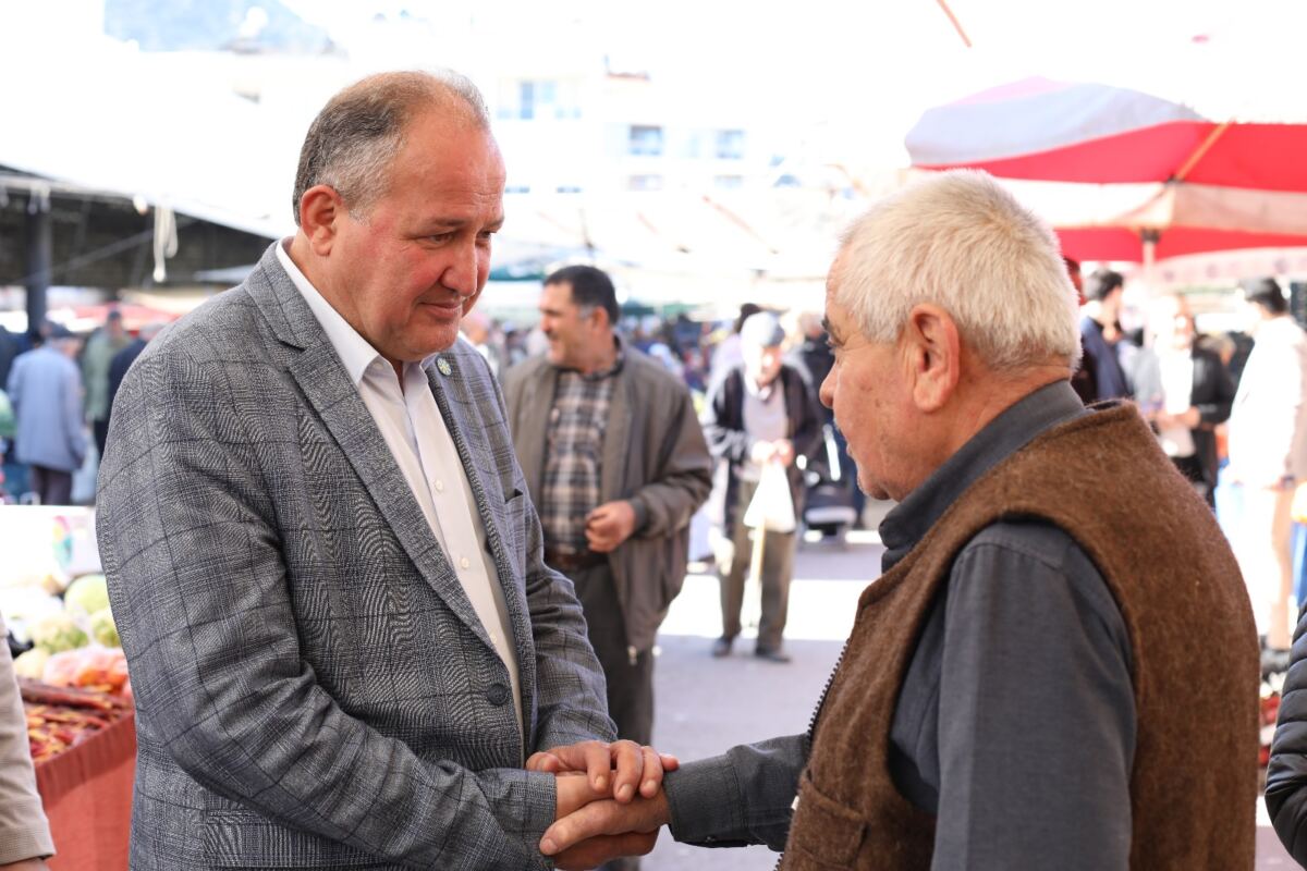 İYİ Parti Milas Belediye Başkan Aday Adayı Mehmet Çayırlı, hazırlanan çalışma programı kapsamında ilçedeki sivil toplum kuruluşlarına yönelik tanıtım ve adaylığı konusunda bilgilendirme ziyaretlerine devam ederken diğer yandan da Salı günleri kurulan halk Pazarı nedeniyle bugün pazaryerinde esnaf ve alışveriş yapan vatandaşlarla çalışma programına devam etti.