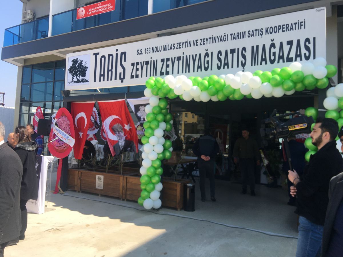 Tariş Zeytin ve Zeytinyağı Birliğimizin Muğla ilindeki tek Kooperatifi olan S.S.153 Nolu Milas Tariş Zeytin ve Zeytinyağı Tarım Satış Kooperatifimizin Satış Mağazası ilçemize ve bölgemize hayırlı olsun.”