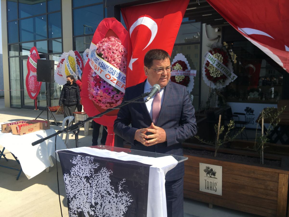 “Zeytinimiz ve zeytinyağımız bizim için çok önemli” diyerek konuşmasına başlayan Milas Belediye Başkanı Muhammet Tokat ise “2022 yılının öneminin farkındayız. 2022 yılında Milas için önemli bir şahlanma ve atılım yılı olarak planlamalarımızı yapmış durumdayız. 28 bin ortağıyla mücadele veren, zeytincilik ve yağ konusunda marka haline gelen kuruluşumuz olan TARİŞ ile omuz omuza çalışıyoruz. Tarımın ve üretmenin öneminin farkındayız. Beraber yürümekten gurur duyduğumuz TARİŞ yönetimini tebrik ediyorum. Ana geçiş güzergahımız olan İzmir – Bodrum Karayolu’nda, o kadar aracın geçtiği yolda bize ait tek bir satış mağazası yoktu. Şimdi TARİŞ buraya bir mum ve ışık yaktı. Umarım süreç içerisinde buradan gelip geçenler Milas’a özel ürünlerimizi alma imkanı yakalayacaklar” dedi.