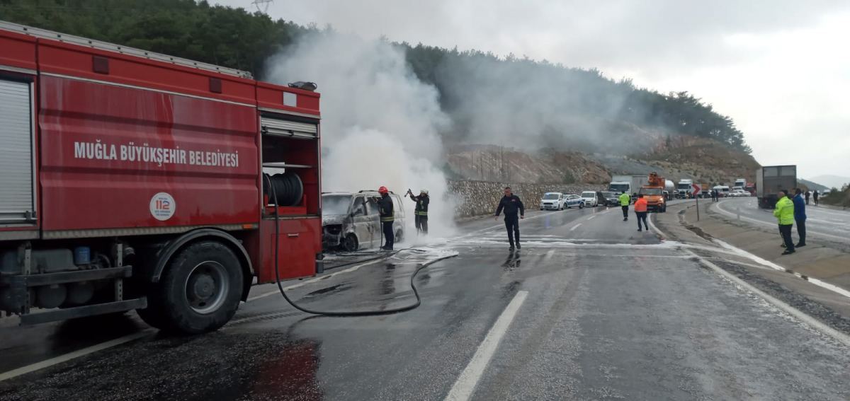 Milas’ta seyir halindeki bir araçta yangın çıktı… Yangında yaralanan olmazken, araç küle döndü…