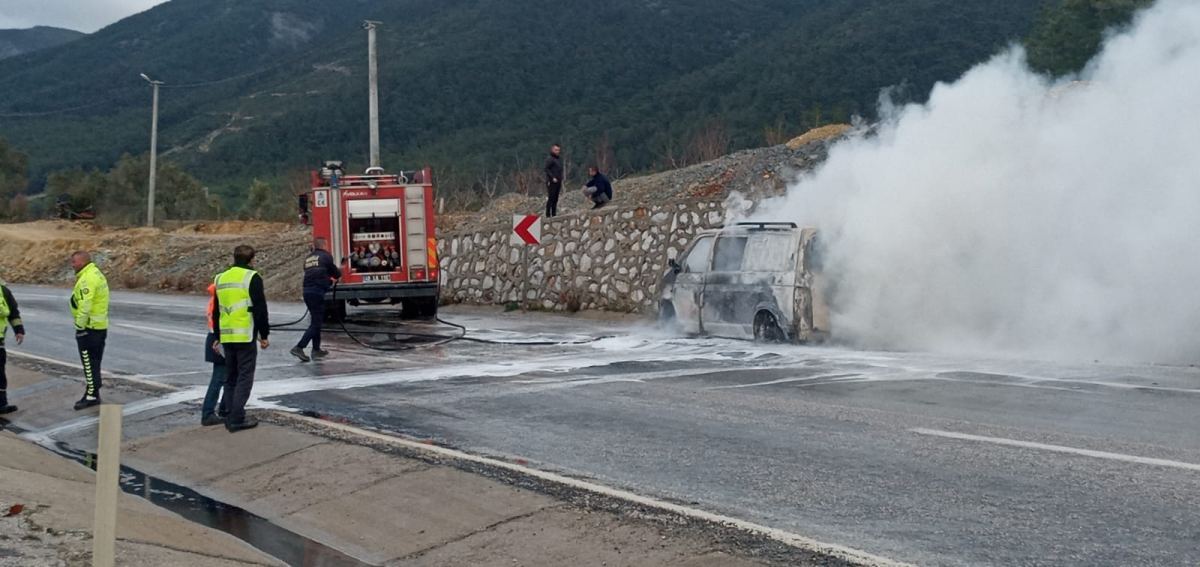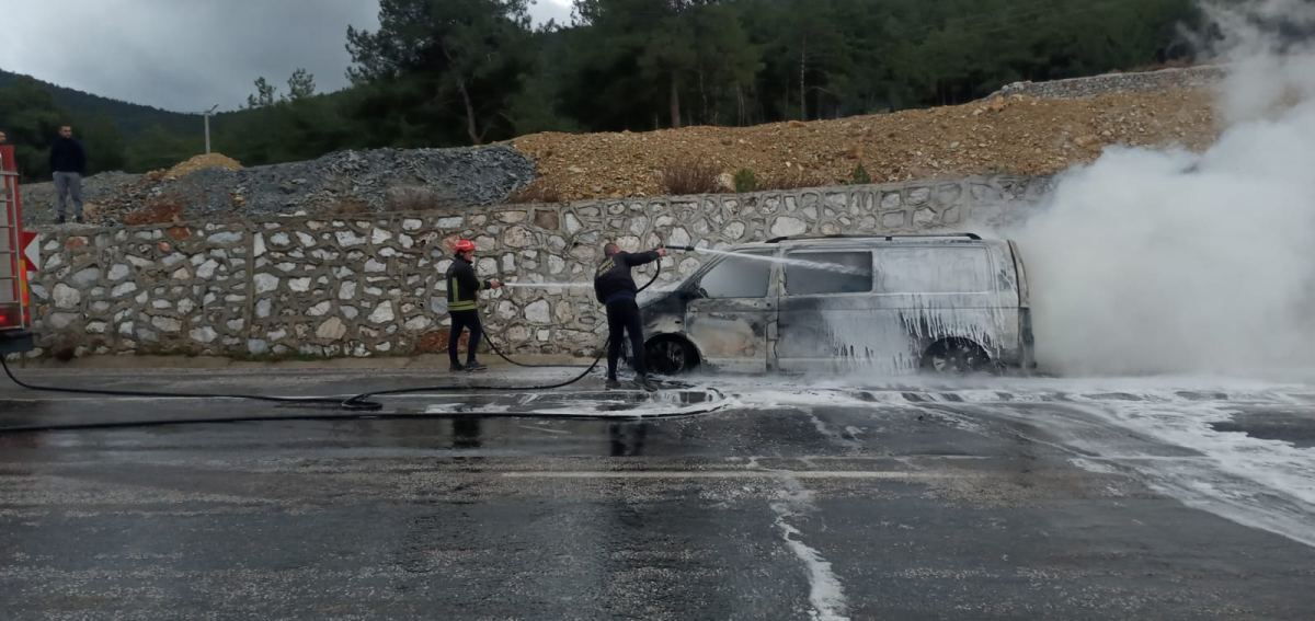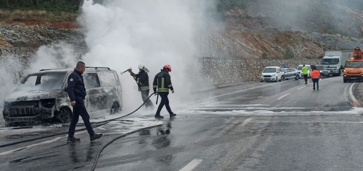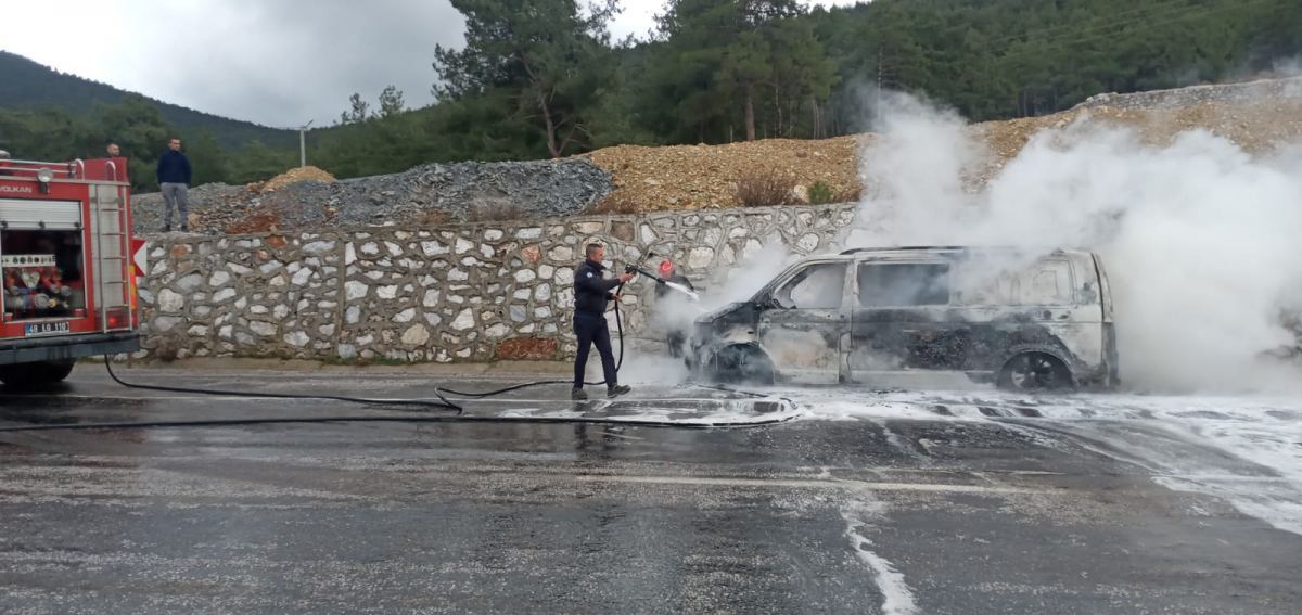 Yangında yaralanan olmazken, araç tamamen yanarak kullanılamaz duruma geldi.