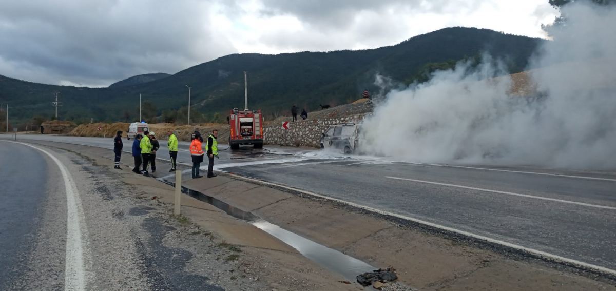 Milas’tan Yatağan istikametine doğru seyreden ticari aracın motor bölümünden dumanlar yükselmeye başladı.
