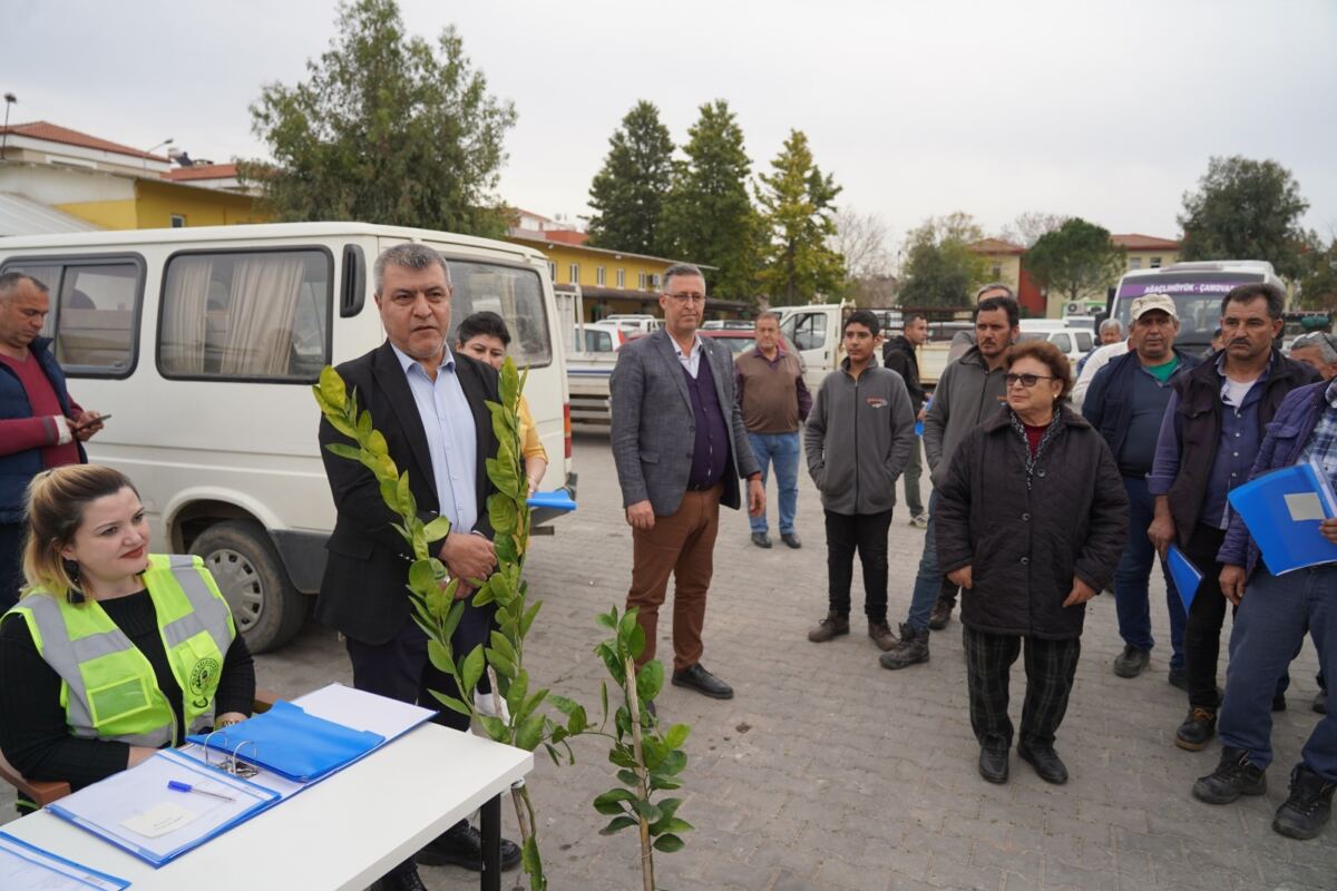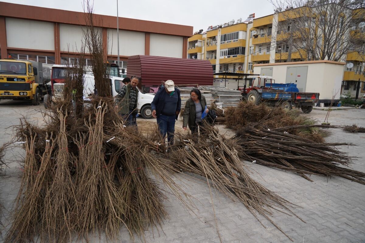 Milas Belediyesi Ek Hizmet Binası arka bahçesinde, Milas Belediye Başkan Vekili Harun Reşit Çavuşoğlu ve Tarımsal Hizmetler Müdürü Süleyman Karatoprak’ın katılımıyla desteklemeden faydalanan üreticilere fidanları teslim edildi.