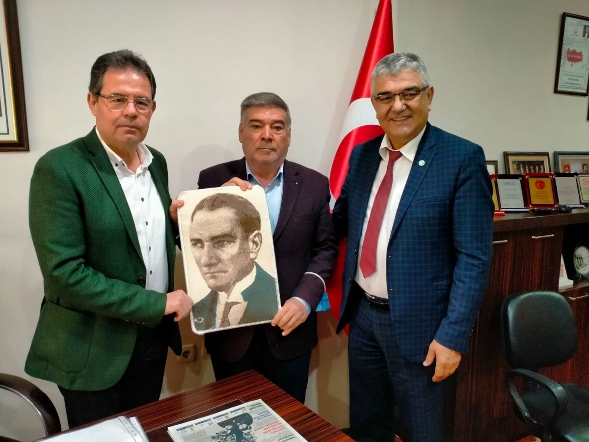 Ziyarette, İYİ Parti Milas İlçe Başkanı Kasım Özkan ve yönetim kurulu üyesi Mehmet Korucu tarafından Başkan Devrim’e, el dokuma halı Atatürk portresi hediye edildi.
