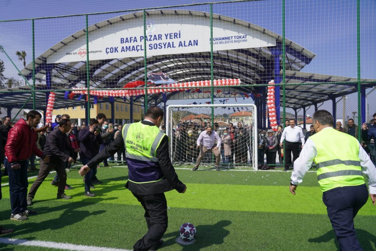 Bu gördüğünüz alandaki hizmet için belediye bütçemizden yaklaşık 3 milyon lira harcayarak Bafa’ya yakışır birçok amaçlı sosyal alan ve Pazar yeri kazandırmak, gençlerimiz için bir spor alanı yaratmak için arkadaşlarımızla birlikte yola çıktık. Ekonomik sıkıntılar ve pandemiye rağmen herhangi bir engelle karşılaşmadan, imalat konusunda da içimize sinen bu güzel tesisi Bafa’ya kazandırdık. Henüz işimiz daha bitmedi! Daha bu alanda yapılacak düzenlemeler var. Buradaki sanayi dükkanlarını yıkacak, alanda düzenlemeler yaparak buraya yakışan bir alanı Bafalıların hizmetine sunacağız. Esnafımıza da yeni dükkanlarını yaparak teslim edeceğiz.