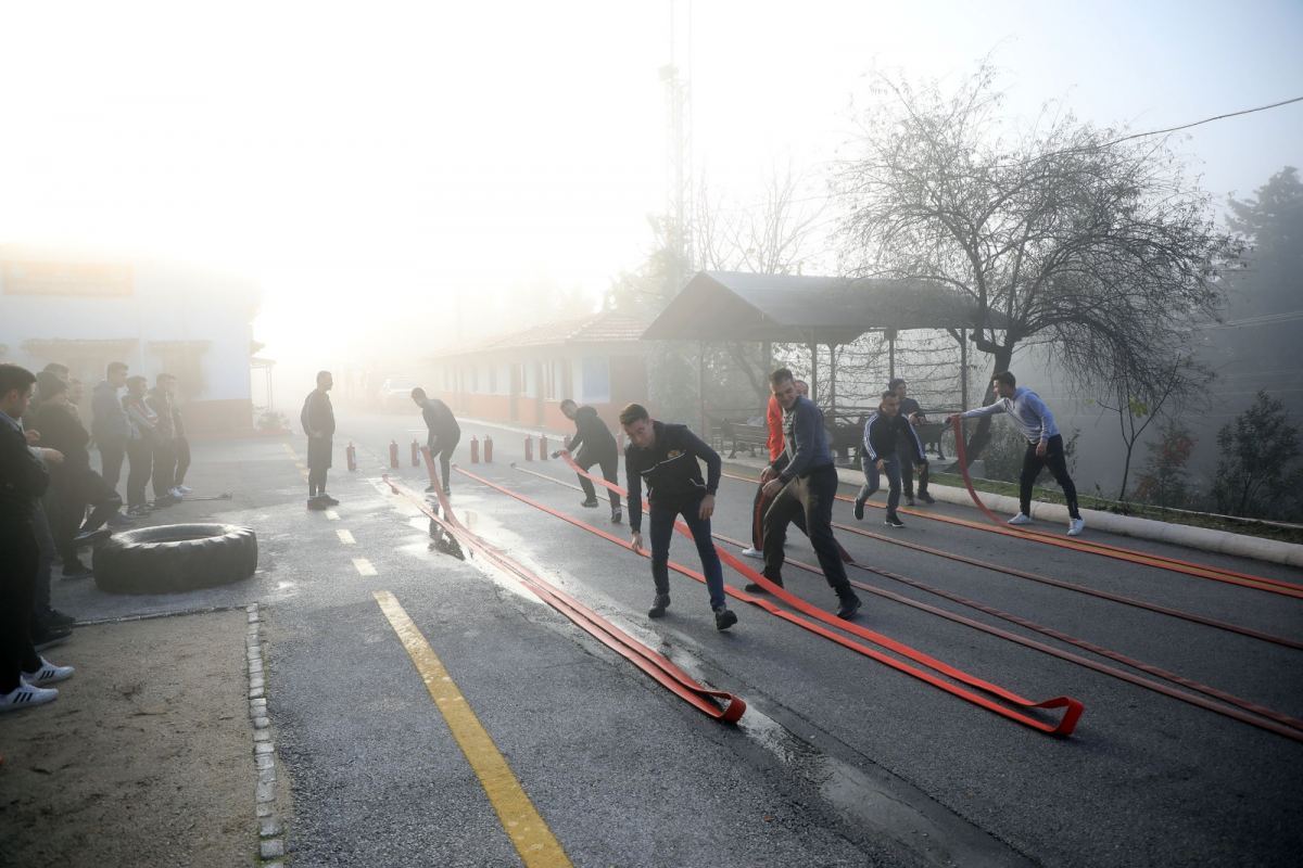 Büyük bir titizlik ve liyakat esasına göre seçilerek görevlerine başlayan itfaiye erleri, itfaiye olaylarına en kısa sürede ve doğru bir şekilde müdahale edebilmeleri için spor ve teknik eğitimi alıyor. İlk spor eğitimlerini sisli ve soğuk havada gerçekleştiren yeni itfaiye erleri, güç kondisyon eğitimi, vücut kaslarının güçlendirilmesi, hortum toplama ve açma gibi hareketler yaptılar. Zorlu eğitimden geçen erlerin spor eğitimleri komando eğitimlerini aratmadı.