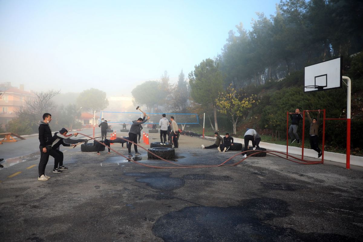 Muğla Büyükşehir Belediyesi tarafından kısa süre önce göreve başlatılan itfaiye erleri ilk spor eğitimlerini gerçekleştirdi. İlk eğitimlerini sisli ve soğuk havada alan erler, itfaiye olaylarına kısa sürede müdahale edilmesini kolaylaştırmak amacıyla kurulan zorlu parkurlarda ter döküyorlar.