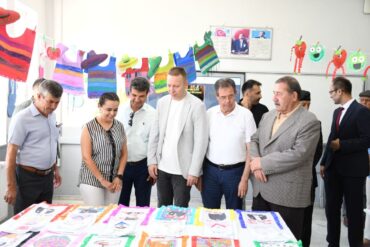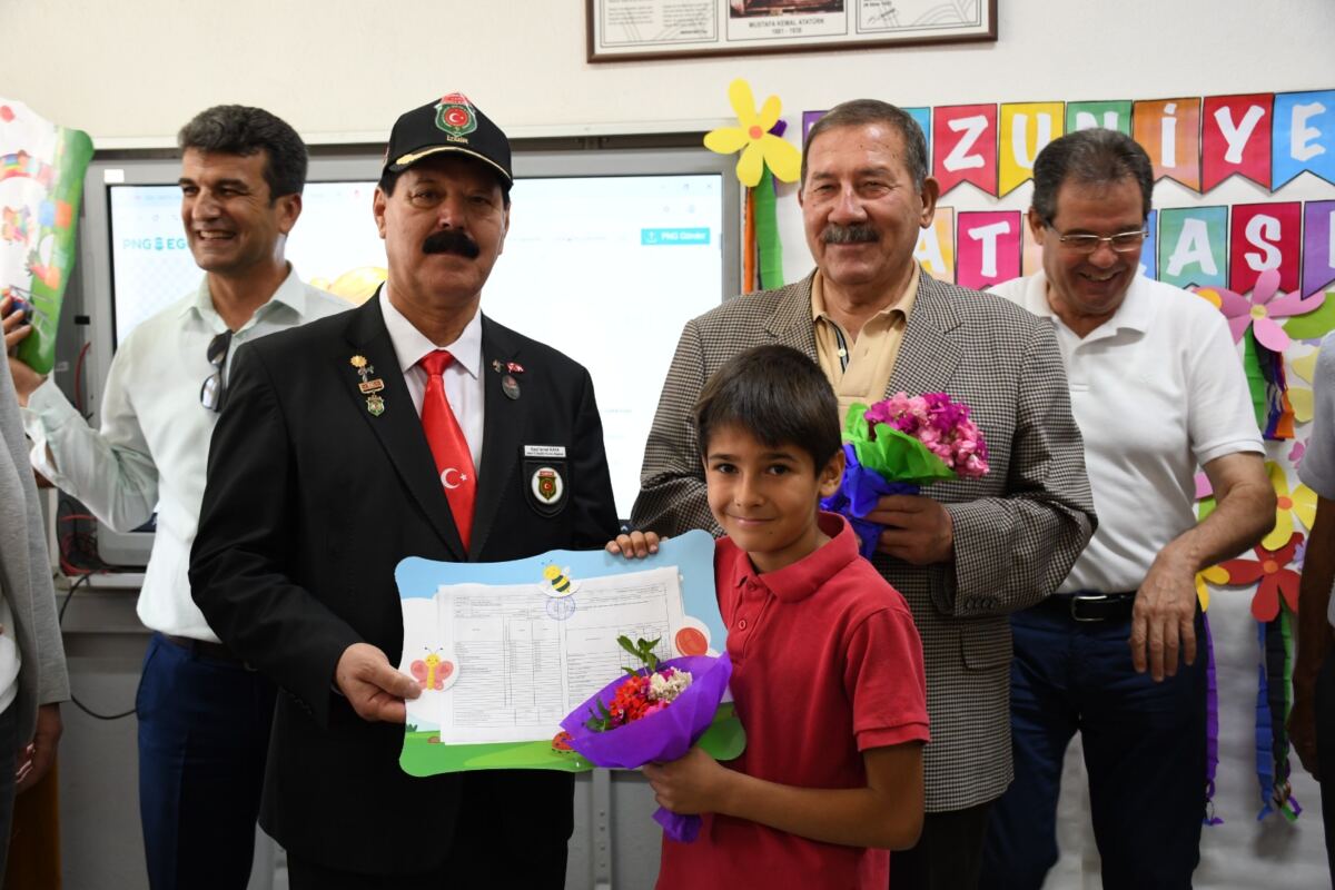 Yapılan konuşmaların ardından protokol üyeleri okul içinde düzenlenen resim sergisini gezdiler. Daha sonra sınıflarda öğrencilerin karneleri takdim edildi.