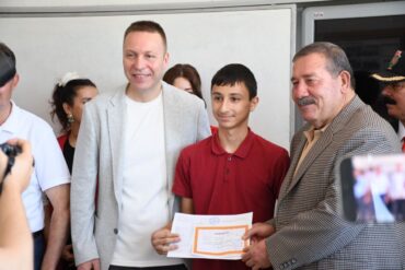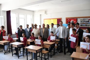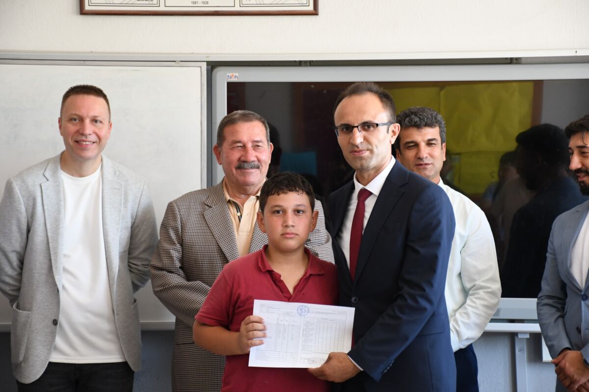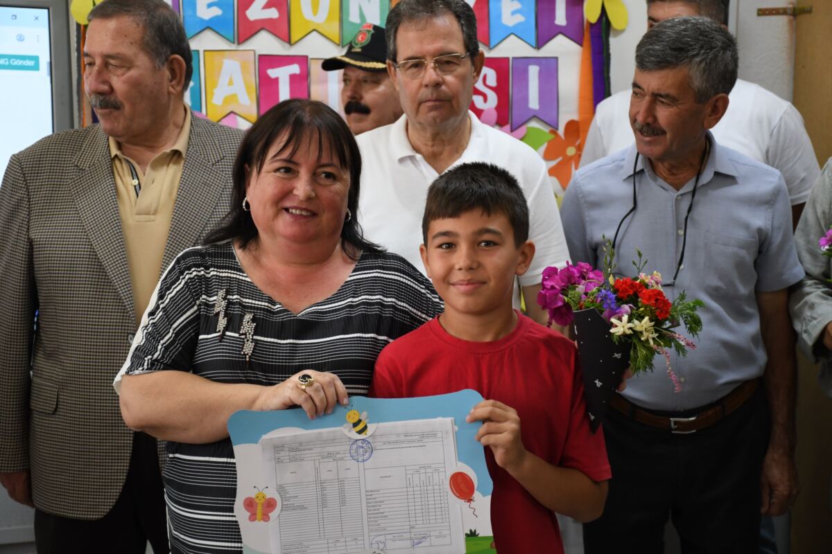 Öğrencilere karnelerinin verilmesinin ardından, okulda dereceye giren öğrencilere ödülleri törene katılan protokol tarafından takdim edildi.