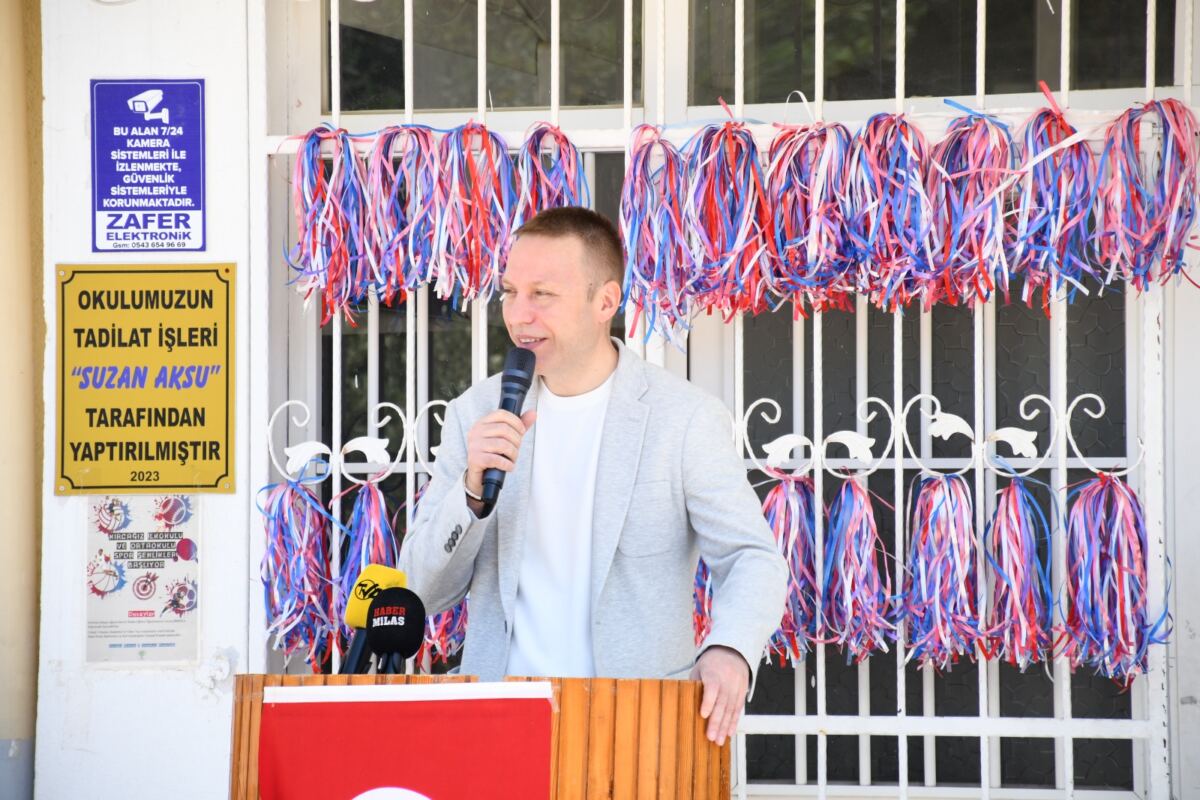 Karne dağıtım töreni, öğrencilerin halk oyunları gösterisiyle başladı. Tören, Milas Kaymakamı Mustafa Ünver Böke ve Milas İlçe Milli Eğitim Müdürü İsa Bal’ın konuşmalarıyla devam etti.